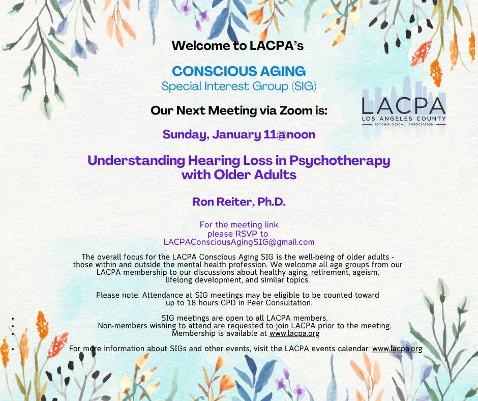 "The opinions of presenters, and their approach to psychological issues and interventions, do not represent a formal endorsement of any position by the Los Angeles County Psychological Association, leadership or its members. The opinions, ideas, and concepts expressed are purely those of the presenter." |
